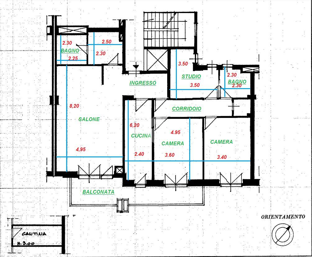Proponiamo la vendita di un quadrilocale composto da ampio salone di 41mq, cucina abitabile, due camere da letto, doppi servizi, studio e ripostiglio, comodo balcone. A completare la proprietà una cantina di pertinenza.